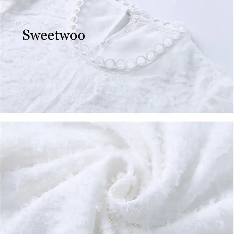 Best Offer SWEETWOO 2020 New Women Two Pieces Set O Neck 3/4 Puff Sleeve White Gray Tank Lace Mesh Shirt Maxi Long Skirt Spring Summer