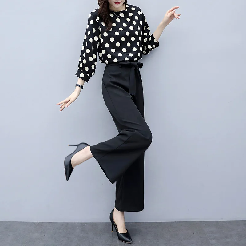 Get this Fashion Leisure Ladies 2019 New Temperament Fashion Leisure Point Two-piece Set with limited time discount by pressing the button below