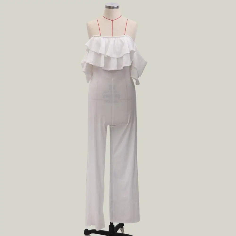 New Ruffle Womens Jumpsuit Fashion Solid Color Short Sleeve Off-shoulder Straight Playsuit Overalls For Ladies Ropa Mujer 2020 New E