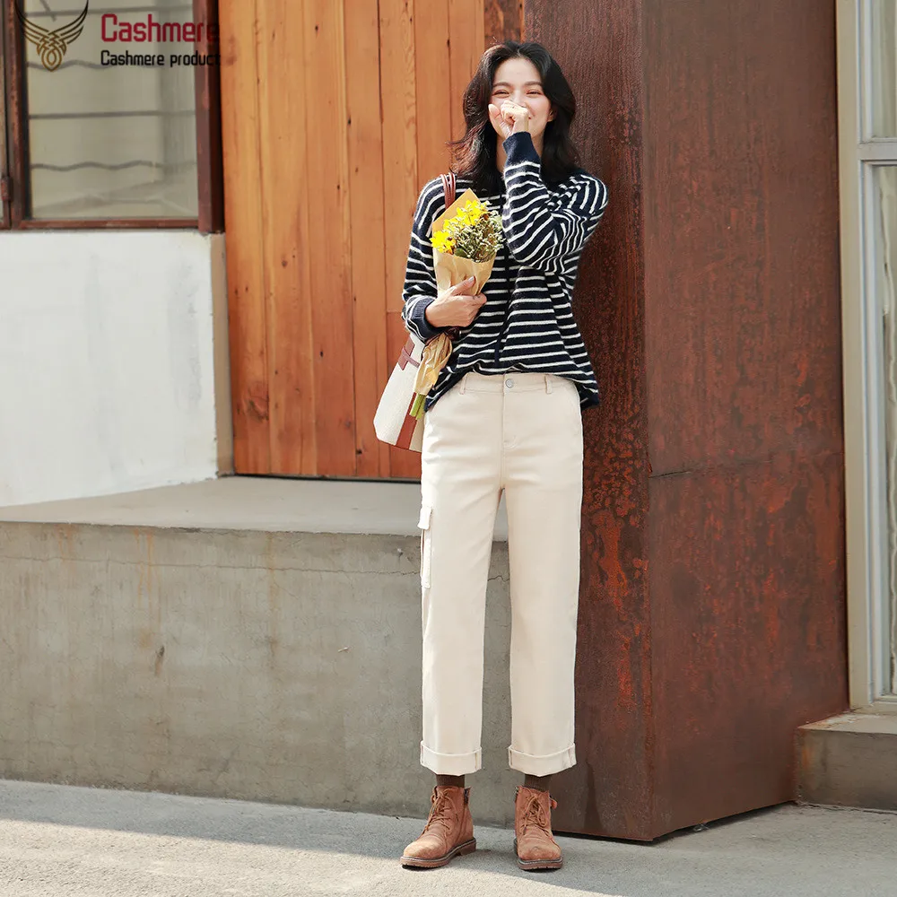 Best Offer Striped hooded sweater female 2019 new autumn retro casual sweater loose striped hooded rabbit sweater knitted sweater female