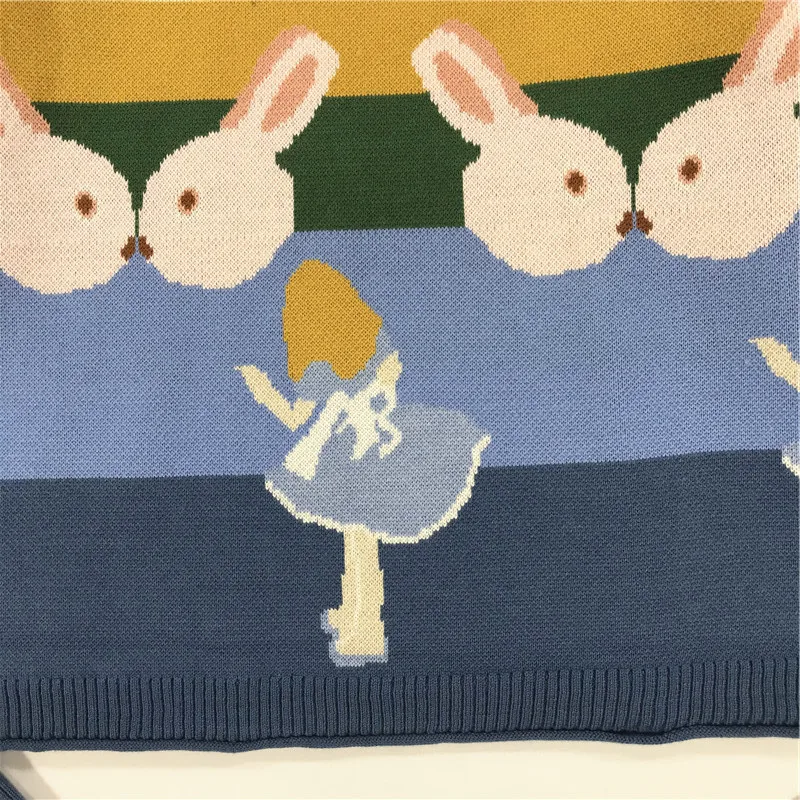 Sale YUPINCIAGA Women Thick Warm Sweaters loose cartoon rabbit Femme Jumper Knitted jacquard O-Neck Knitted Drop Shoulder Pullover