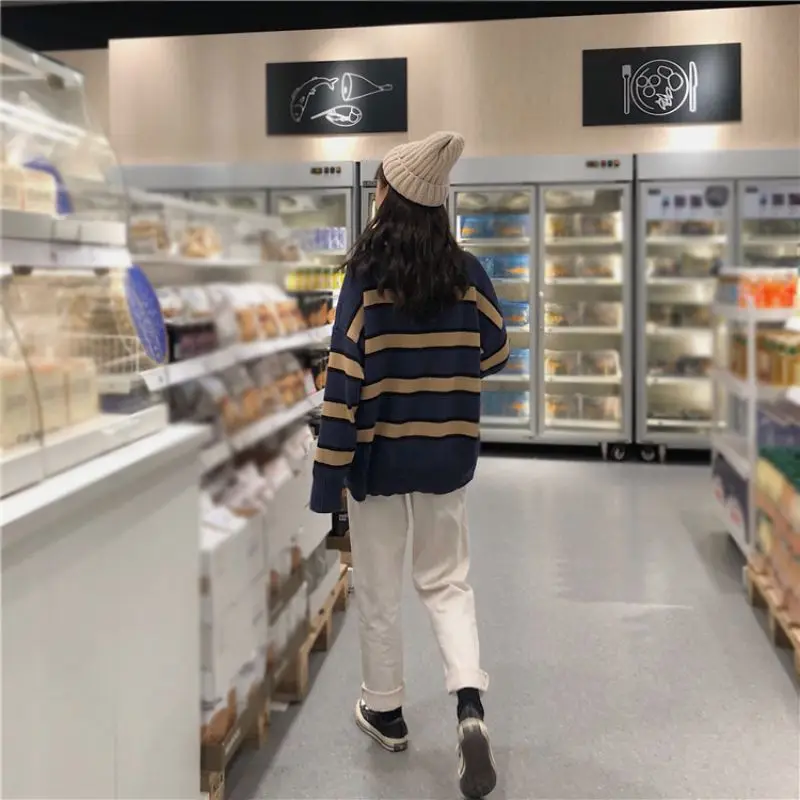 Buy Ladies Autumn Winter Striped Sweater Women Pullover Plus Size Loose Sweaters Oversized Casual Sweater Jumper