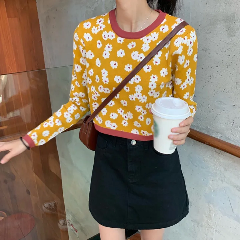 Promo Spring and autumn fashion Europe and the United States small floral sweater women autumn and winter round neck shirt M MM